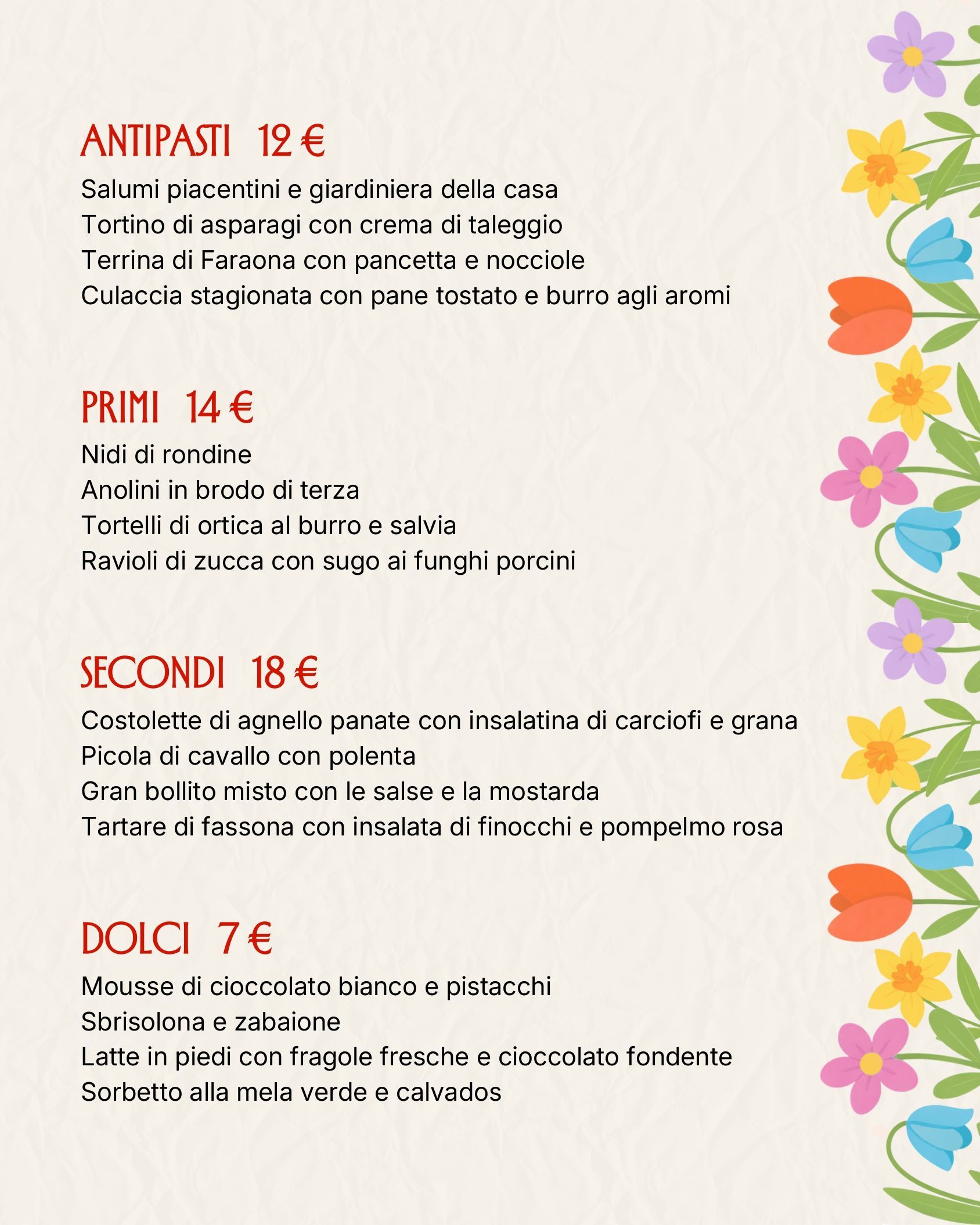Le proposte per Pasqua e Pasquetta vengono pensate per accompagnare pranzi e cene in un’atmosfera conviviale, con portate strutturate che seguono la stagionalità degli ingredienti e il rispetto delle preparazioni tradizionali. Consultando i menù festivi è possibile conoscere nel dettaglio i piatti proposti e organizzare al meglio il proprio pranzo o la propria cena durante le festività.