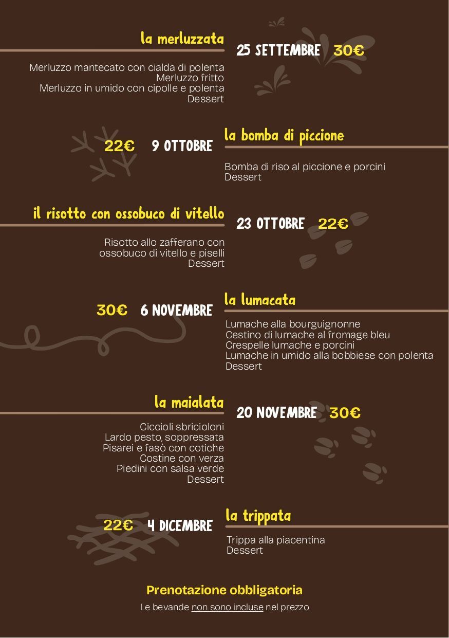 Inoltre, ogni anno, la nostra trattoria ospita “Na Mangiada in si Sass”, una tipica festa della tradizione piacentina.